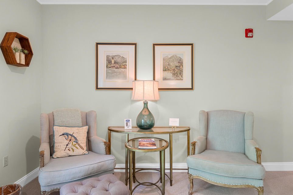 Rich cherry wood tones and a newly added sleigh bed set the scene for a stay that feels both warm and sophisticated. Accents of fawn, fern green, deep wine, and soft slate blues create a calming palette inspired by the surrounding Vermont landscape.